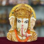 Marble Dust Ganesha Ji Face Statue Sitting on a Table